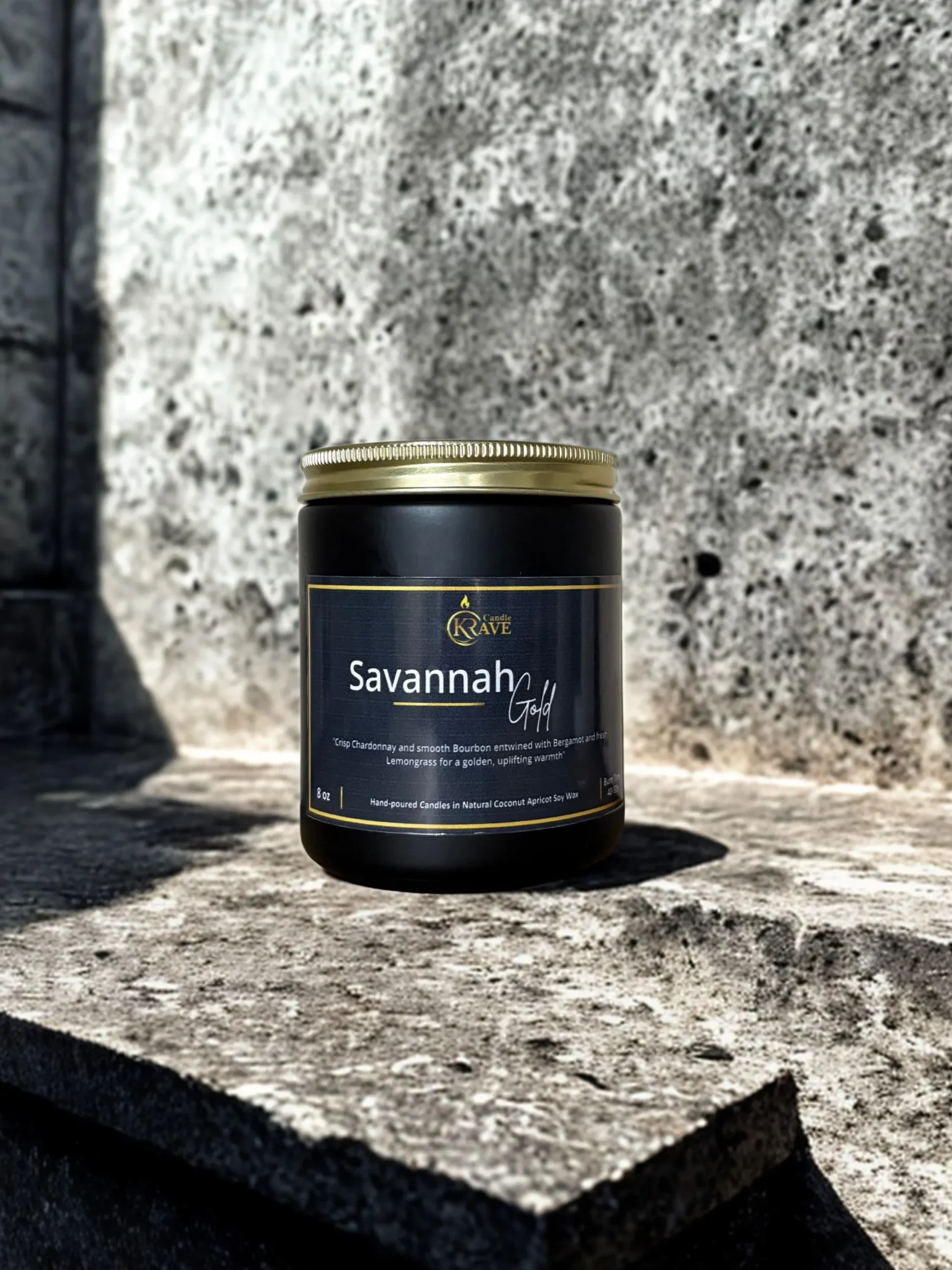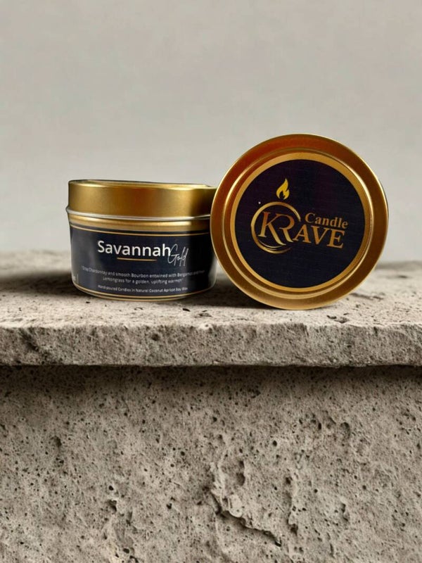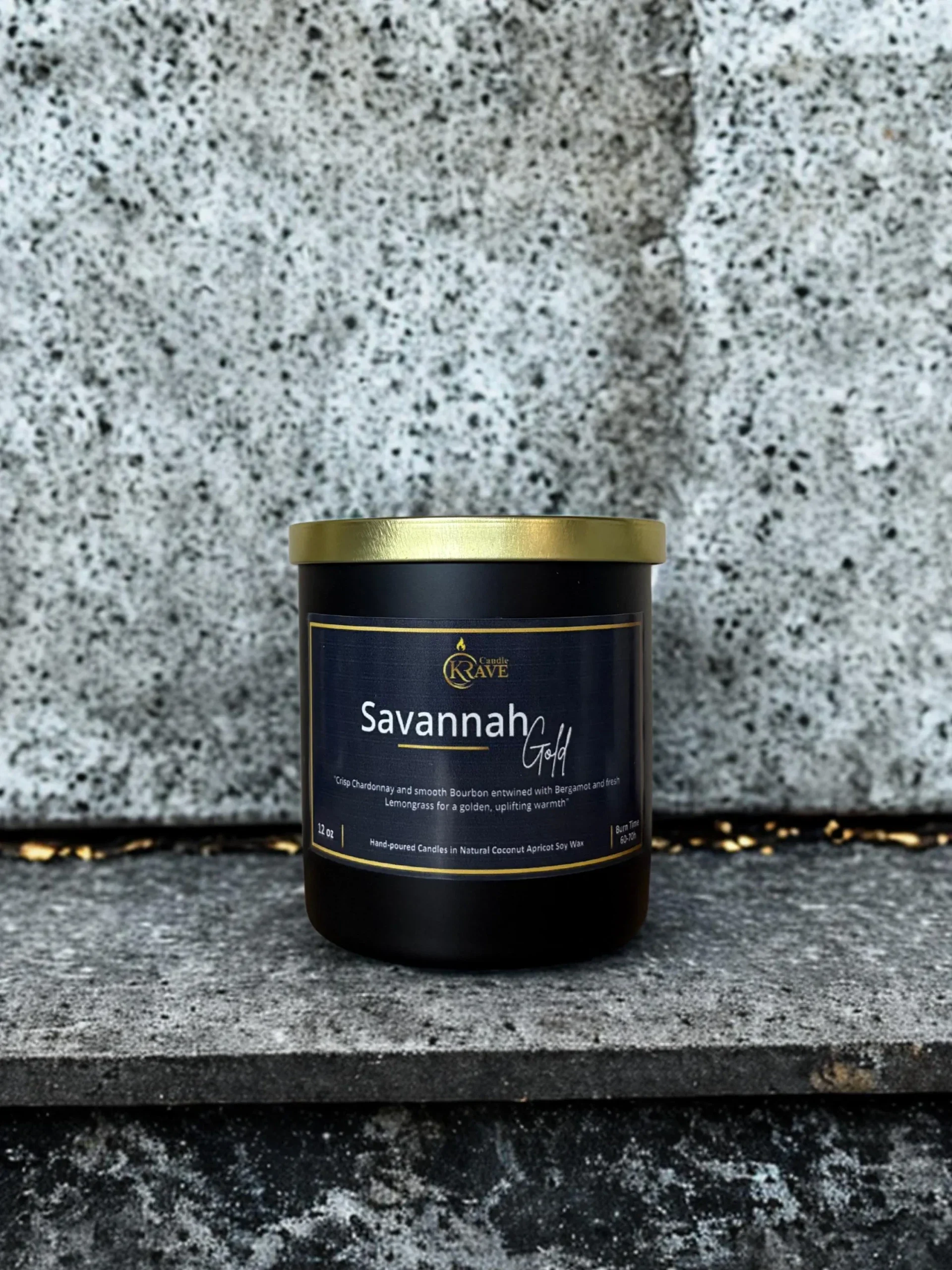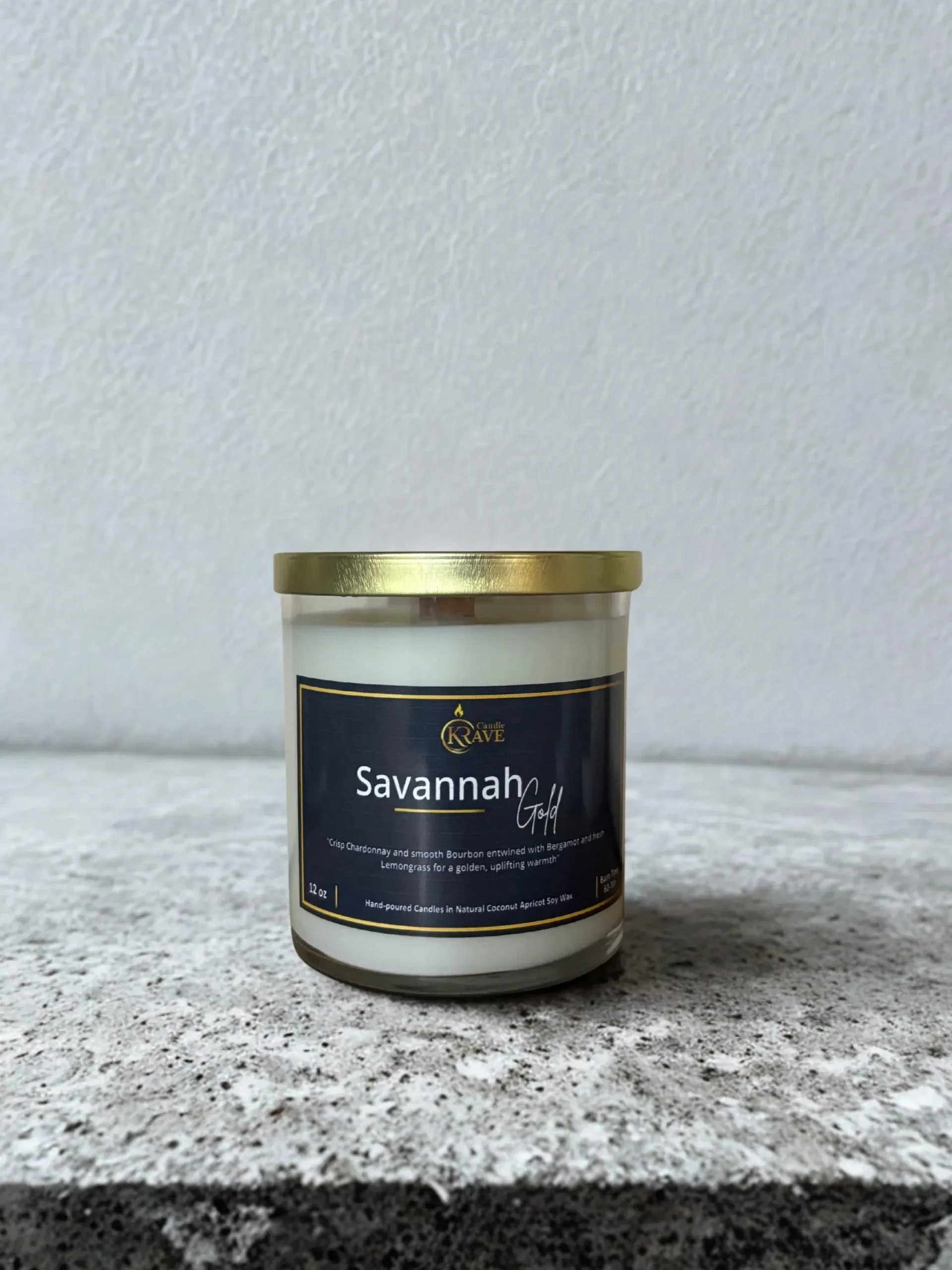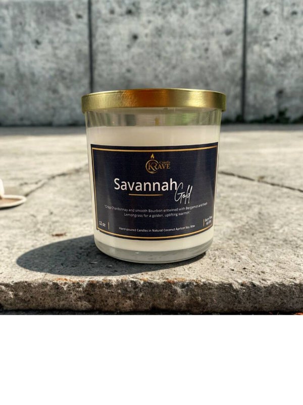 Savannah Gold is the glow of open light, a candle born of warmth and renewal. Smooth chardonnay and deep bourbon form its golden body, while crisp lemongrass and bright bergamot cut through with a fresh, spirited lift. The result is a fragrance that feels both radiant and grounding—like sunlight draped across wide horizons.